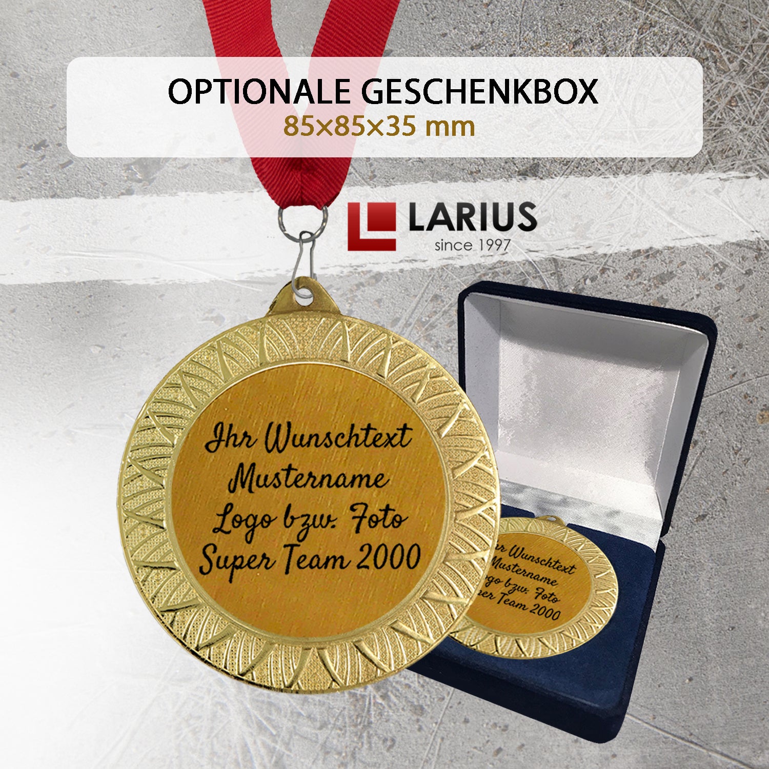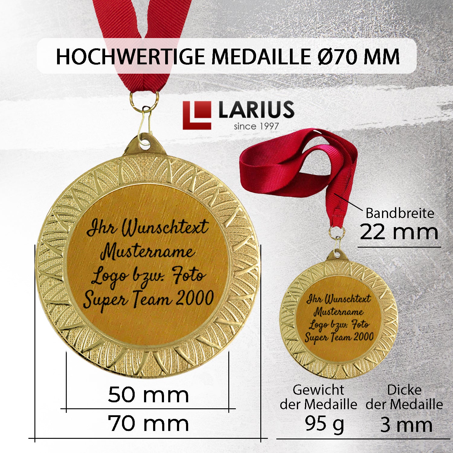 Larius Premium Medaille aus Metall (Ø70 mm, 95 g, 3 mm dick) – mit Wunschtext